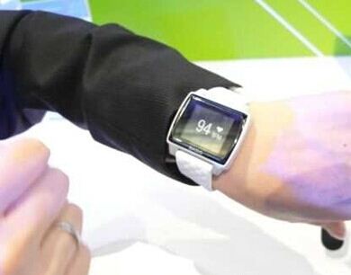 穿戴裝置市場(chǎng)正快速發(fā)展,英特爾并購(gòu)專門推出個(gè)人健康、保健產(chǎn)品的BASIS,現(xiàn)場(chǎng)展出BASIS的智慧表,可測(cè)量使用者心跳、步行距離。