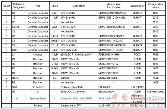 BD9A600MUV-EVK-001評(píng)估板材料清單: