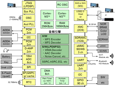 LC823450是音頻處理系統(tǒng)大規(guī)模集成電路(LSI),為其供電的是高能效的ARM® Cortex®-M3核和32位/192 kHz音頻處理引擎,支持基于硬件的MP3編碼/解碼和無(wú)線音頻,提升性能和電源能效。LC823450以其充足的片上SRAM(1656k字節(jié)),為音頻處理和應(yīng)用任務(wù)提供大量?jī)?nèi)存,無(wú)需配備輔助內(nèi)存芯片。設(shè)計(jì)人員還可利用豐富的集成的音頻外圍器件如模擬/數(shù)字轉(zhuǎn)換器、鎖相環(huán)和D類放大器。此外,行業(yè)標(biāo)準(zhǔn)接口如SPI、I2C、SDCard和UART使產(chǎn)品設(shè)計(jì)人員能內(nèi)置通用連接。
