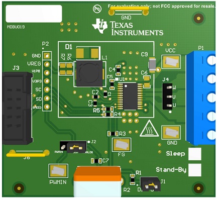 圖5.評(píng)估模塊DRV10983-Q1 EVM PCB效果圖 |