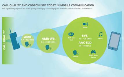 繼AMR-WB之后的下一代3GPP VoLTE編解碼器---增強(qiáng)型語音EVS, 可為手機(jī)用戶提供全高清語音通話質(zhì)量。聽Fraunhofer IIS的技術(shù)人員講,EVS除了顯著提升了語音通話服務(wù)質(zhì)量外,還支持全高清語音超寬帶語音編碼范