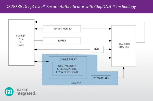 DS28E38安全認證器采用ChipDNA™技術,提供高成效的交鑰匙安全方案,有效保護用戶設計