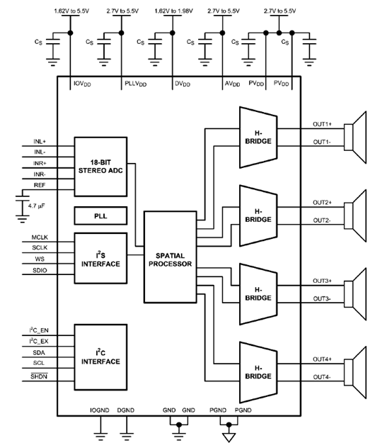 The LM48901’s flexible I 2S interface is compatible with standard serial audio interfaces. A stereo differential-input ADC gives the device the ability to process analog stereo audio signals.