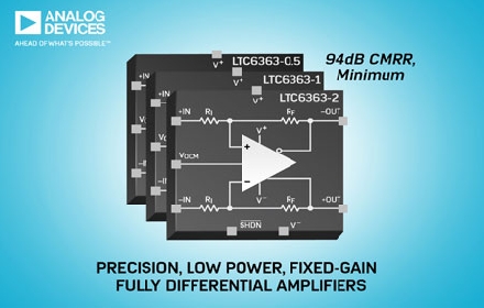 Analog Devices, Inc.(ADI)宣布推出LTC6363-0.5、LTC6363-1和LTC6363-2精準、固定增益、全差分放大器,這是備受認可的 LTC6363 放大器之超精準固定增益版本系列。新產(chǎn)品可提供 0.5、1 和 2V/V 的固定增益,能夠靈活將輸入調(diào)節(jié)至 ADC 滿量程。