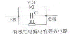 等效電路中,C1位電容,R1為兩電極之間的漏電阻,VD1為具有單向?qū)ㄌ匦缘难趸ぁ?/font>