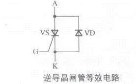 從等效電路中可以看出,逆導(dǎo)晶閘管相當(dāng)于在普通晶閘管上反向并聯(lián)一只二極管。