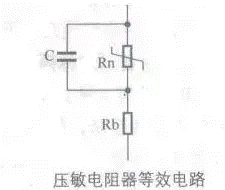 下圖所示是壓敏電阻器等效電路。等效電路中,Rn是晶界電阻,C是晶界電容,Rb是晶粒電阻。
