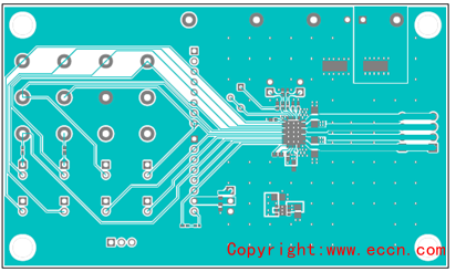圖9.評估板MAX22203 EVK PCB設(shè)計圖:底層 |