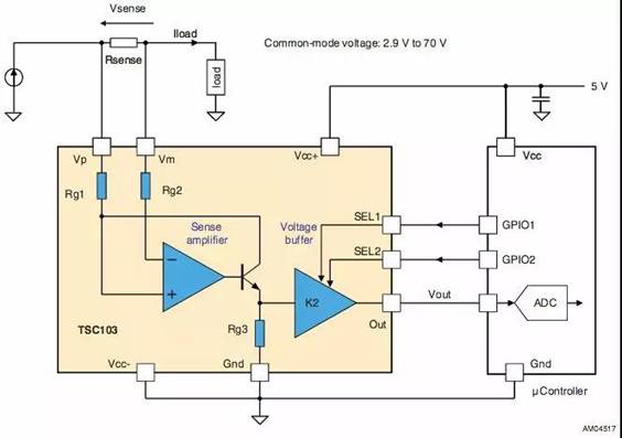 本文用一個具體的例子比較在電壓軌上完成電流檢測的幾種不同方法。DY種方法是使用帶分立電阻器的單運放差分放大器;第二種方法是用V 而不是地作為參考軌;第三種方法在IC解決方案中很常見,在這種方案中,晶體管和運算放大器一起工作,以接地參考電流測量。