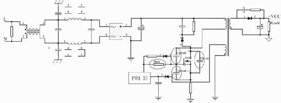 由1-1和1-2式可知,寄生電感和di/dt形成電壓尖峰,寄生電容和dv/dt形成電流尖峰。這些快速變化的電流和關(guān)聯(lián)的諧波在其他地方產(chǎn)生耦合的噪聲電壓,因此影響到開關(guān)電源EMI特性。下面以反激式開關(guān)拓?fù)錇槔,對降低MOSFET的dv/dt和di/dt措施進(jìn)行介紹。