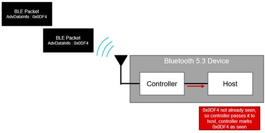 使用周期性廣告的BLE設(shè)備通常會(huì)多次發(fā)送信息,以增加傳輸?shù)亩鄻有圆⑻岣邟呙柙O(shè)備正確解碼的可能性。因此,偵聽(tīng)器設(shè)備可能會(huì)接收到同一分組的多個(gè)副本,并且會(huì)浪費(fèi)功率多次解碼同一信息。