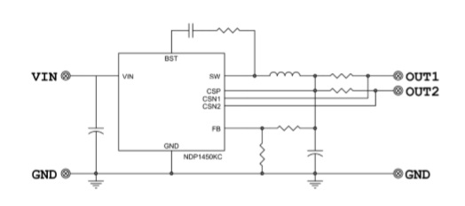 NDP2450KC支持5.5V至40V的極寬輸入電壓范圍,輸出電壓從1V至25V可調(diào)。能夠為負載持續(xù)提供高達5A的輸出電流。 |