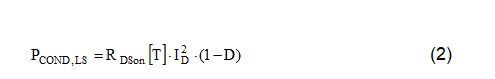 下橋臂MOSFET的導(dǎo)通損耗(PCOND)用以下公式(公式2)計(jì)算: