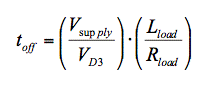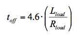 在二極管續(xù)流電路中,負(fù)載兩端的電壓僅增加二極管正向傳導(dǎo)電壓,因此電流衰減為e -t 的函數(shù)。如果關(guān)斷 電流定義為飽和電流的 1%,典型續(xù)流二極管的關(guān)斷時(shí)間可由下式計(jì)算:
