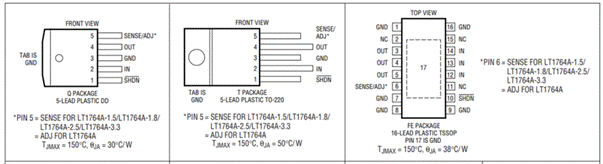 實(shí)際輸出能力與壓差和電流有關(guān),手冊(cè)中給表示的理想狀態(tài)。實(shí)際的輸出能力和壓差及電流相關(guān)。大的輸出電流值散熱問(wèn)題越嚴(yán)重,如果是大電流的應(yīng)用盡量使用開關(guān)電源。
