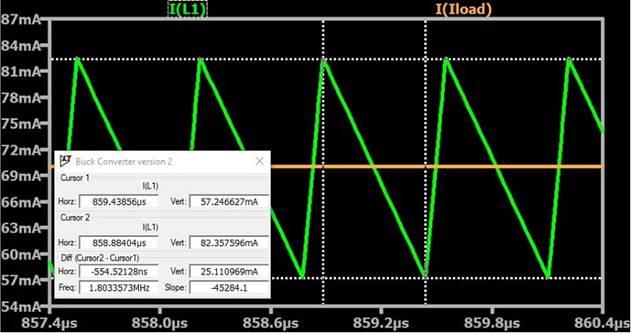 我們的設(shè)計(jì)目標(biāo)是電感紋波電流為 30%,這意味著和電感電流應(yīng)為 80.5 mA 和 59.5 mA: