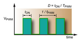在深入設(shè)計濾波器之前,步是快速查看 PWM 傳感器的輸出信號是什么樣的。PWM 波形基本上是一個方波,其頻率我們將定義為 fPWM,幅度為 0 V 表示邏輯低電平,VCC 表示邏輯高電平。從這里開始,我們將幅度稱為 VPWM 。信號高電平時間 tON 與周期 (TPWM = 1 / fPWM ) 的比率就是占空比 D。這些關(guān)系如圖 1 所示。