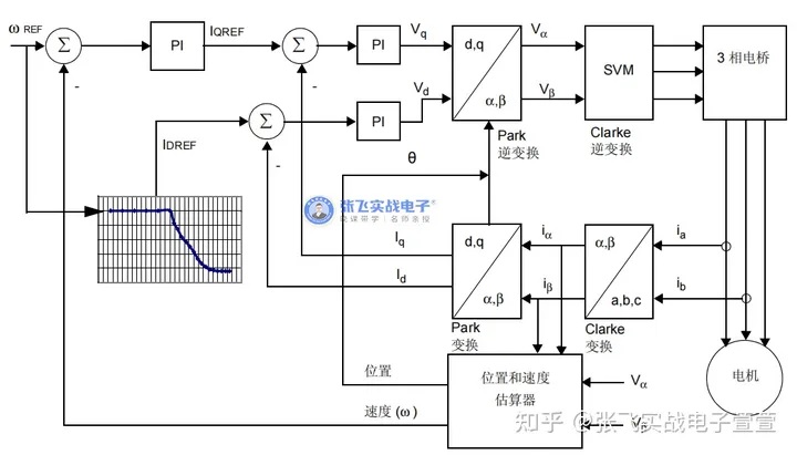 FOC典型控制框圖如下圖四所示。為了得到電機轉(zhuǎn)子的位置、電機轉(zhuǎn)速、電流等信息作為反應,首先需求收集電機相電流,對其進行一系列的數(shù)學變換和預算算法后得到解耦了的易用控制的反應量。然后,依據(jù)反應量與目標值的誤差進行動態(tài)調(diào)整,最終輸出3相正弦波驅(qū)動電機轉(zhuǎn)動。