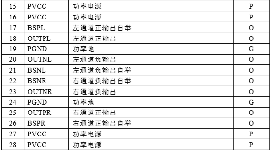 2×22W(VDD=14V, RL=4Ω, THD+N=10%)或34W (VDD=16V, RL=4Ω, THD+N=10%) |
