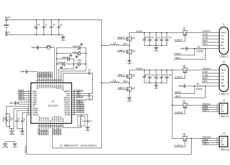 雙路3-8節(jié)多串升降壓140W大功率移動電源SOC |