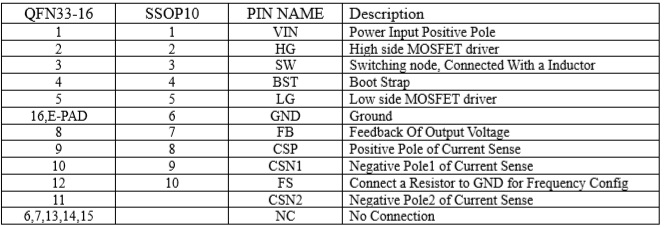 輸入電壓范圍:4V-60V;輸出電壓范圍:1V-VIN ;集成上下功率管,最大輸出電流2.5A |