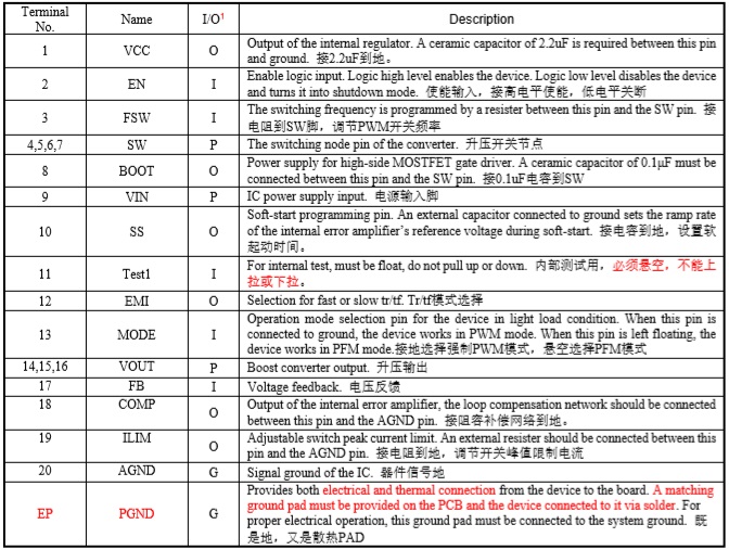 HT7178 輸入電壓范圍:2.7V -14 V;輸出電壓范圍:4.5V-20V ;可編程峰值電流: 14A DFN-20 2.7V-14V 20V 14A帶輸出關(guān)斷的全集成同步升壓IC TPS61088/HT7167