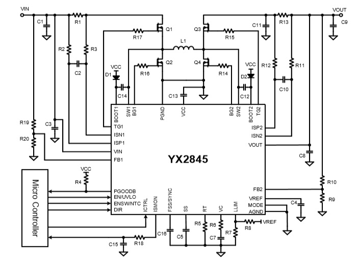 YX2845是一款雙向雙向降壓-升壓控制器,適用于驅(qū)動高效功率轉(zhuǎn)換器中的硅(Si)MOSFET 或氮化鎵(GaN)功率晶體管。它支持高達 35V的寬輸入和輸出范圍,可在降壓、降壓-升壓和升壓模式之間無縫轉(zhuǎn)換。寬輸入電壓范圍:4V至45V,寬輸出電壓范 圍:2V至45V. |