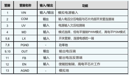 輕負(fù)載工作時(shí)MD管腳可選自動(dòng)PSM工作模式或強(qiáng)制